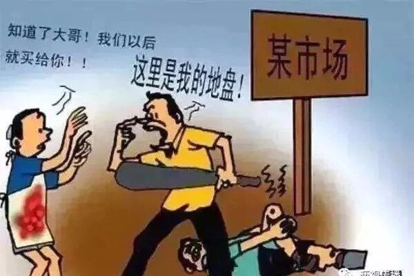 六、在商贸集市、批发市场、车站码头、旅游景区等场所欺行霸市、强买强卖、收保护费的市霸、行霸等黑恶势力;